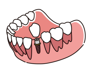 歯を失った部分の骨に人工の根(インプラント体)を埋め込みます。その上に人工の歯を付けて咬合や見た目を回復する治療です。入れ歯、ブリッジとは違い、残っている歯に負担をかけずに噛み合わせが得ることができます。